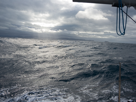 A week later the winds finally changed to the south and we left into what became 30-40 gale force with very rough seas washing over the deck. It gave us what we call the 'runaway train' experience-moving very fast, close to the edge of control with three reefs in the main and just the staysail set.