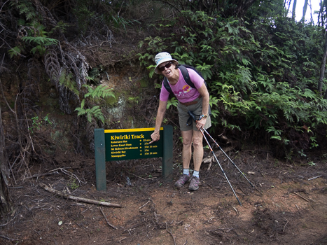 We moved to Kaiarara Bay, dropped the dingy into the water and were soon facing the green sign with gold letters posting hours to trail destinations. Mentally I wanted to climb to Mt. Hobson which we had done twice before, the last time twelve years ago. But we decided that the seven hour round trip after the pounding we had just been through would be the equivalent of an NFL double header. We opted for the four hour return up the stream through the fern forest. The hike took us to the remains of dam where, a hundred years ago, Sequa sized Keri trees waited after felling to be flushed down to the shore in a thunderous flood that could be heard and felt for miles.
