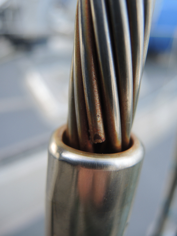 Onora has a massive rig and I am confident we could safely sail to Brisbane with the one broken strand but it is a warning sign and so we will replace the stay.