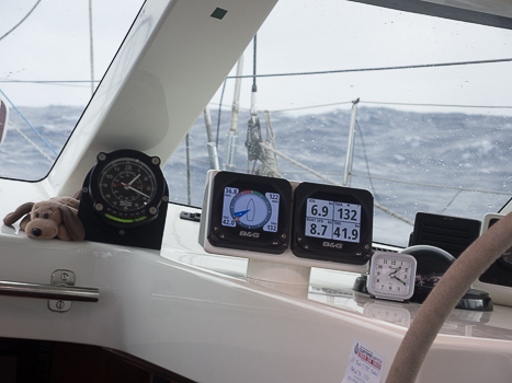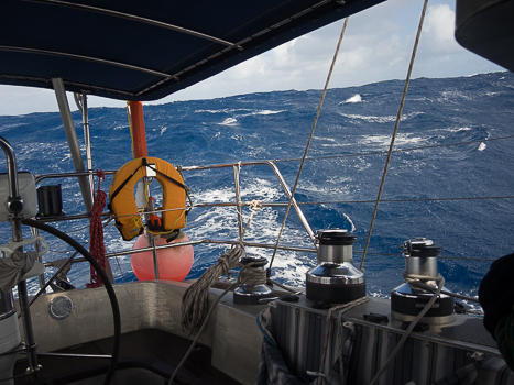 We are now busy cleaning up the sticky residue and soaked bedding, rugs and rags from the salt water that buried us and found its way through unsealed vents and fell from our soaked foul weather gear each time we returned from the deck. We are also going to gain back the eight pounds we each lost.