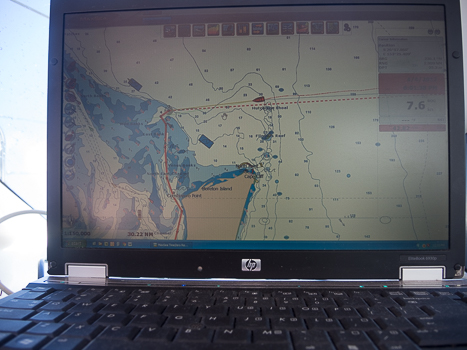 Just hours into our seventh day we reached Morton Bay but our struggle was not over. Just as we entered the sand channels of the North East Channel the engine died. Our heading was straight into the wind so we could not sail. My instinct was to head back into the gale for sea room but I did not think that would be good for our relationship so we let the anchor go instead. It grabbed.