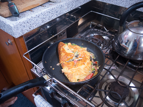 After five hours of uninterrupted sleep, our longest since leaving New Zealand, Jeannie was busy making our 'quarantine breakfast', hoping to beat the arrival of the biosecurity officer who was due to make sure we did not infect the country. We knew he would remove our chicken, eggs, pork ,fresh fruits and vegetables for burning. We aimed to eat all we could.