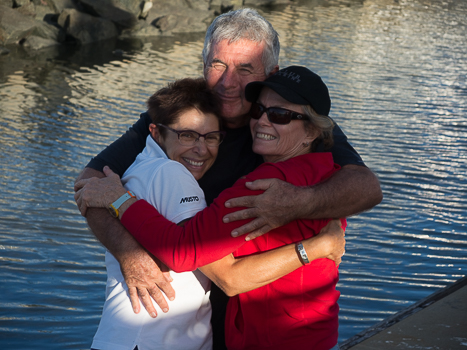 Now it was very slow going against the weather, bucking forward at just two knots. I figured that a flat sheeted staysail might keep the bow down so the propeller would grab. We unfurled it with happy result. We picked up speed and finally, very very very tired, at 9:00 pm, arrived at the Brisbane River customs dock where six officers were waiting for us. We landed in bed at 12:30 am on April 5th.