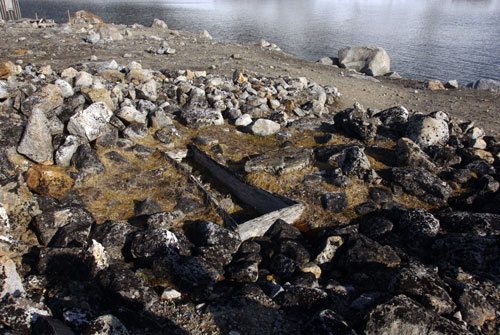 We sailed up to Virgohamna (79 43 N 10 55 E) on the 21st. On shore were the ruins of an old whaling operation and more interesting, the ruins of the hydrogen dirigible launching area for two failed polar attempts in the early 1900's. The remains of foundations, wood frames, hydrogen works and raw materials, remain where left one hundred years ago.